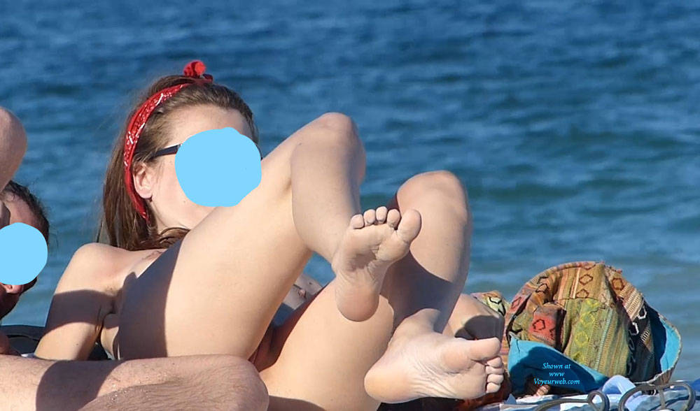 I don't know why he felt the need to paint out her face, but brava and much respect to all women who have the self-confidence to go fully nude at a public beach. Much respect! YES.