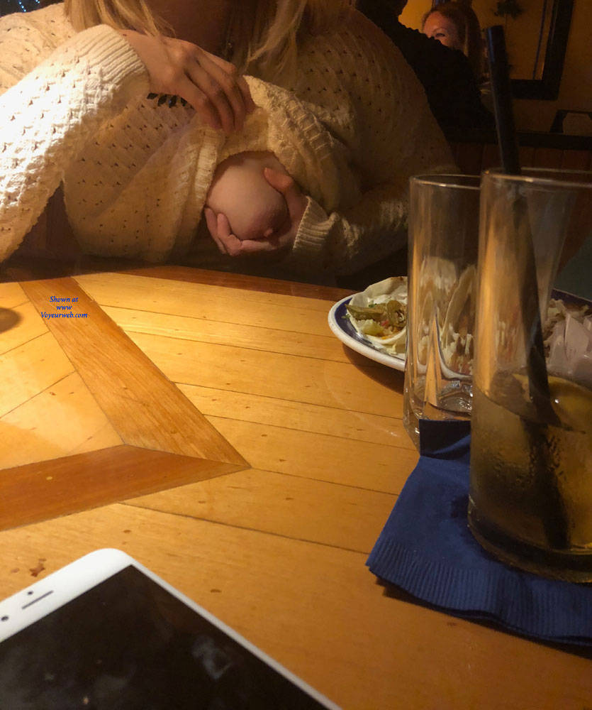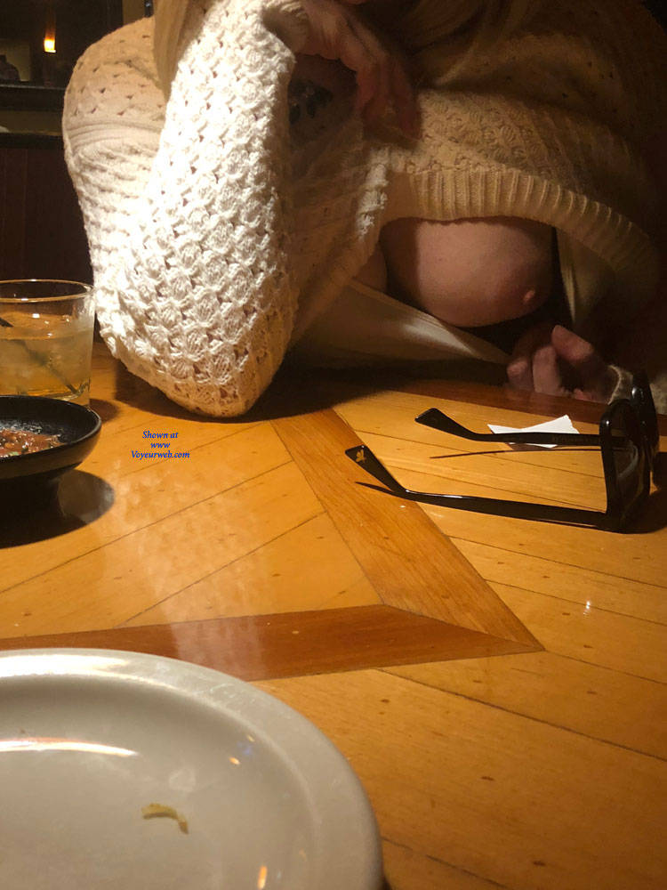 Here she is showing them at a restaurant and on the drive home. She almost got caught in the restaurant!