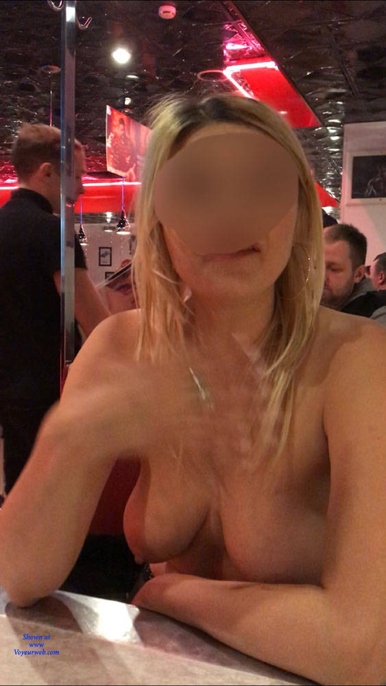 We often stay late on Saturday night. Natali wants to dance king in the topless club. Then we get hungry and go to eat something in some restaurant. It may happen that we forget that Natali has her breasts uncovered...