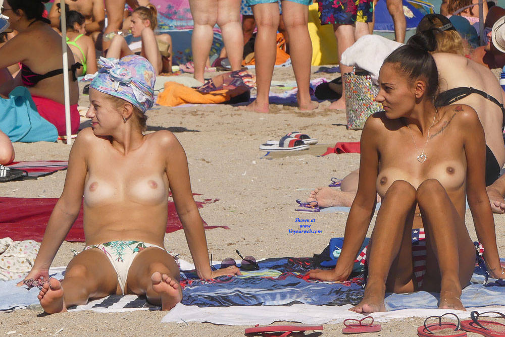 Topless Girls Beach Big Tits Brunette Outdoors Beach Voyeur