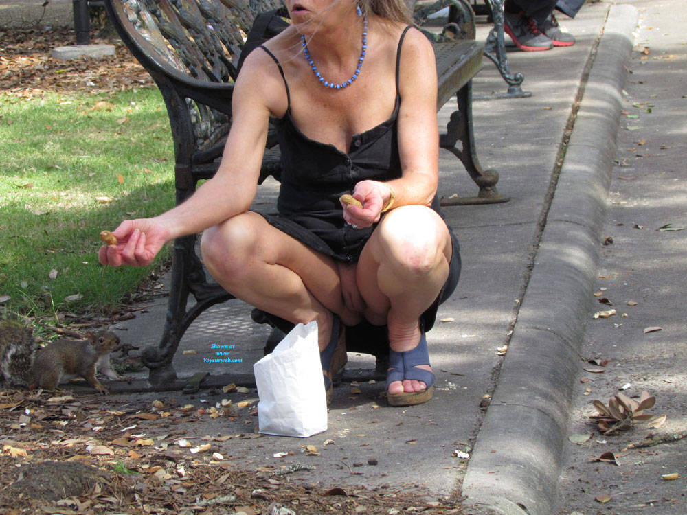 We drove to Bienville Park in Mobile Ala. to feed the squirrels. They will eat right out of your hand. She never wears underwear so it's always a revealing good time.