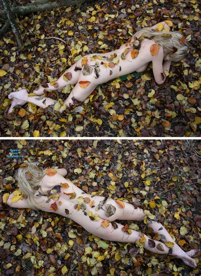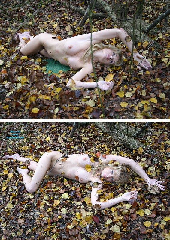 We went out in her back lot and found some Fall Leaves on the ground and she had some fun and rolled around in the naked while I took her picture.