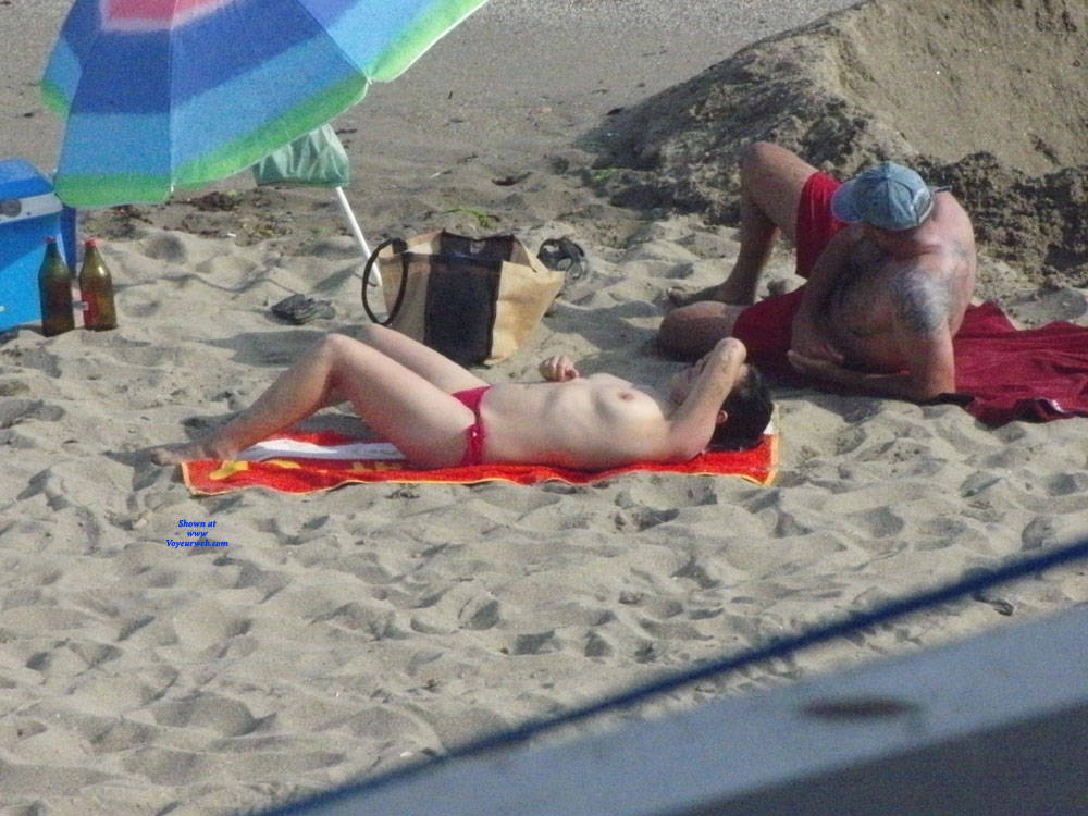 Topless Girls Beach Brunette Outdoors Beach Voyeur