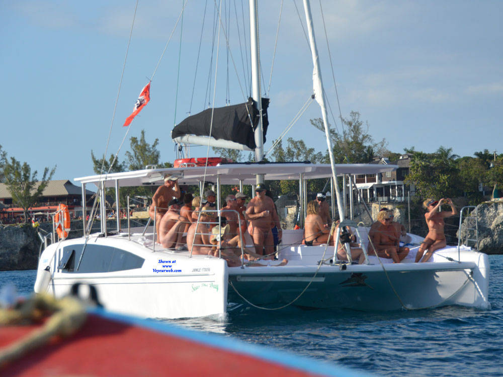 While on a Sunset Cruise in Negril Jamaica, we were passed by a large catamaran filled with nude sailors. They were enjoying themselves out on the open waters along with everyone else. I'm sure the hundreds of cliff divers at Ricks Cafe enjoyed them as they watched them while moored off shore.