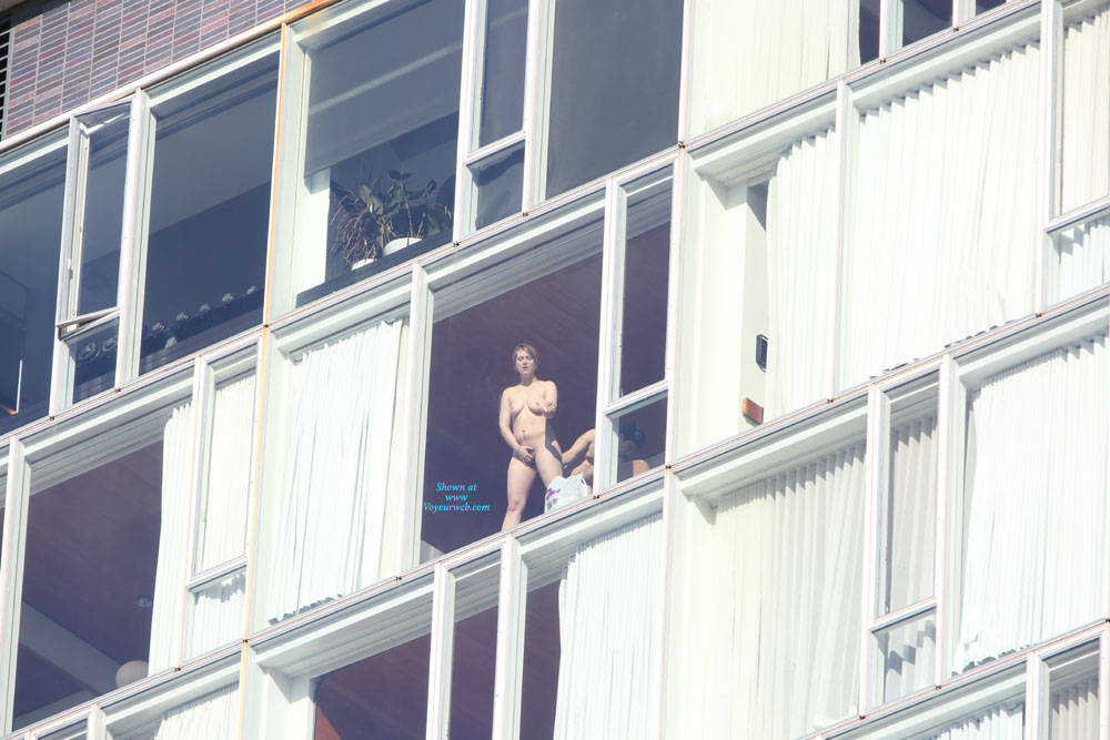 Caught a glimpse of this wild couple having sex in their hotel window in the middle of a Saturday morning. They seemed quite aware of the crowd watching from below.
