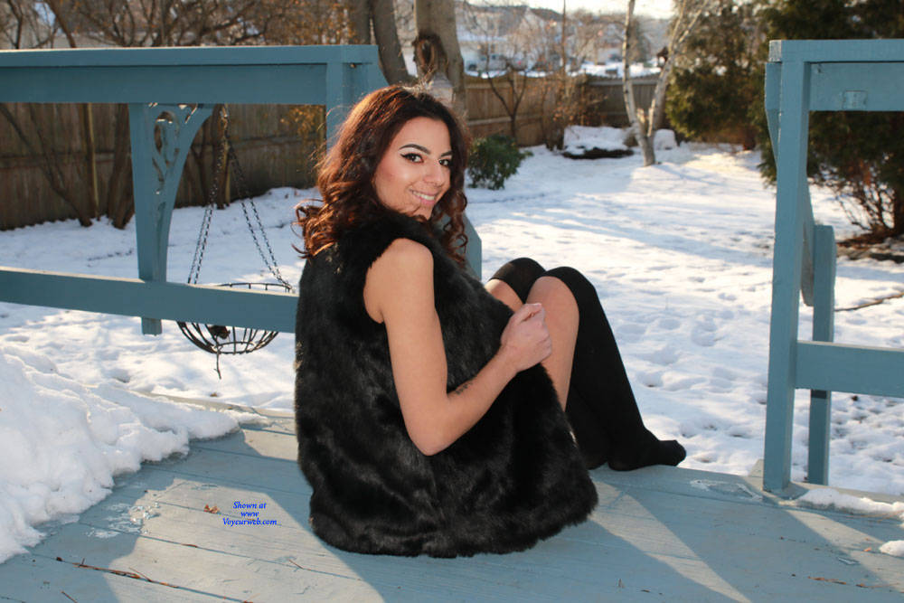 Here are a few photos of the sexy Sierra in her fur coat on the back porch. As you can tell it was a bit nippy out.