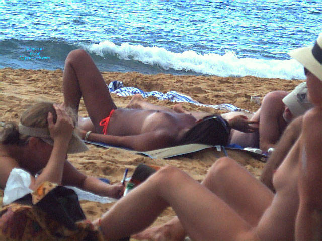 He should have used a better camera, but brava and much respect to all women who have the self-confidence to go fully nude -- or at least "topless" -- at a public beach! NADA to all others!