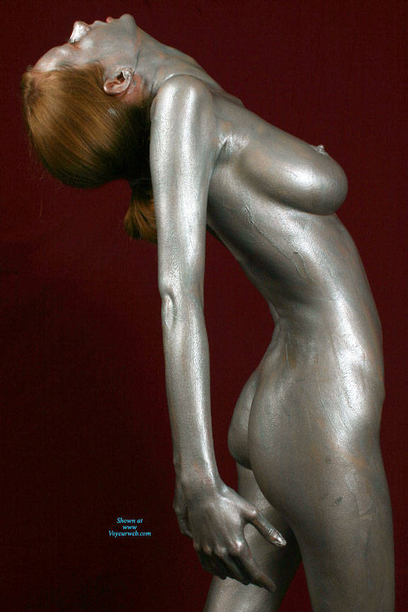 Very creative! The silver paint allows the light to play wonderfully with her curves. Her red hair is also a huge bonus! Thanks for giving us so many different views of her absolutely perfect breasts. Thanks!