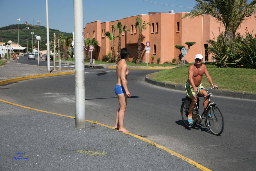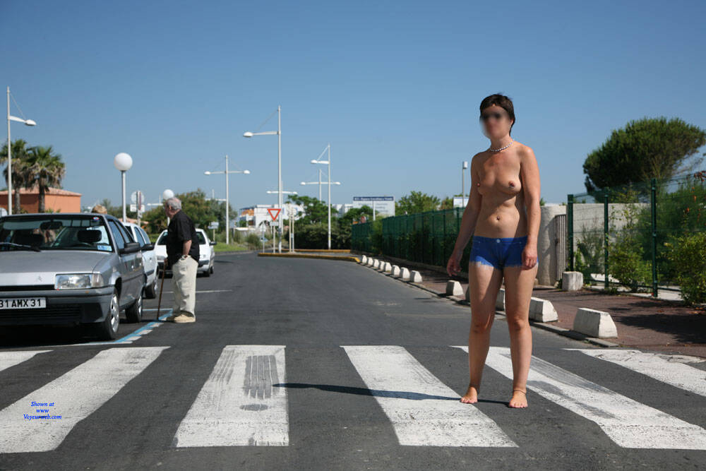 Mike loves painting me with blue jean cut off shorts and then I go out barefoot and naked in public, either in full daylight or for the evening and night. When I'm out at in the evening everyone can see I'm barefoot and topless but those who really see that I'm totally naked suddenly do a double take, then smile then lots of them come up and ask whether it is actually paint or just very tight shorts and want to touch to make sure. The last shot of me late at night with the shorts all smudged is after a long evening of strolling around naked in public with the evidence of just how many people wanted to check me out, touch me and feel the shorts. It is so sexy and fun to be out at night arm in arm with Mike walking along or in a crowded bar looking topless but actually being totally naked in public.