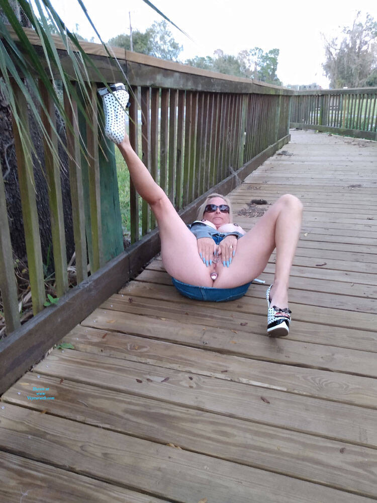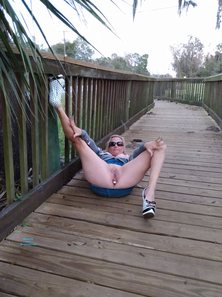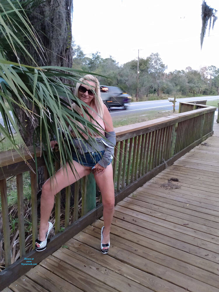 Decided to do a little flashing along the highway. So many people were honking their horns. I got so wet I had to lay down and play. Keep the ideas coming and I will too. Love, High Heel Honey.