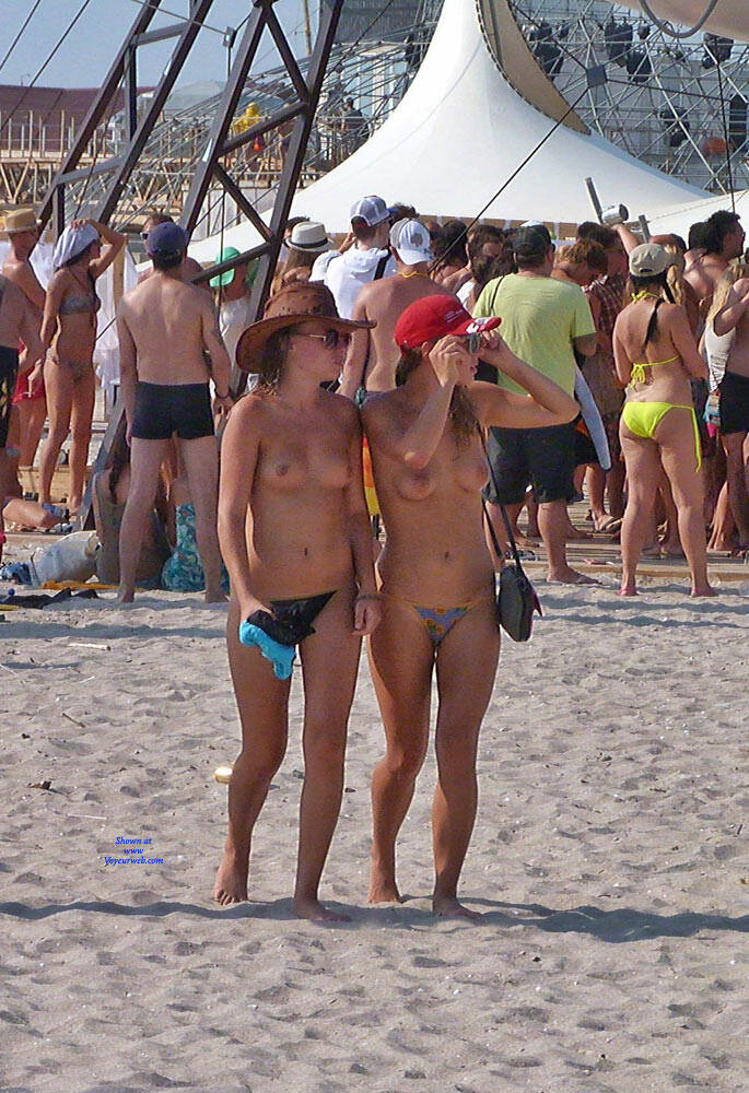 Topless Girls Beach Brunette Outdoors Beach Voyeur Medium Tits