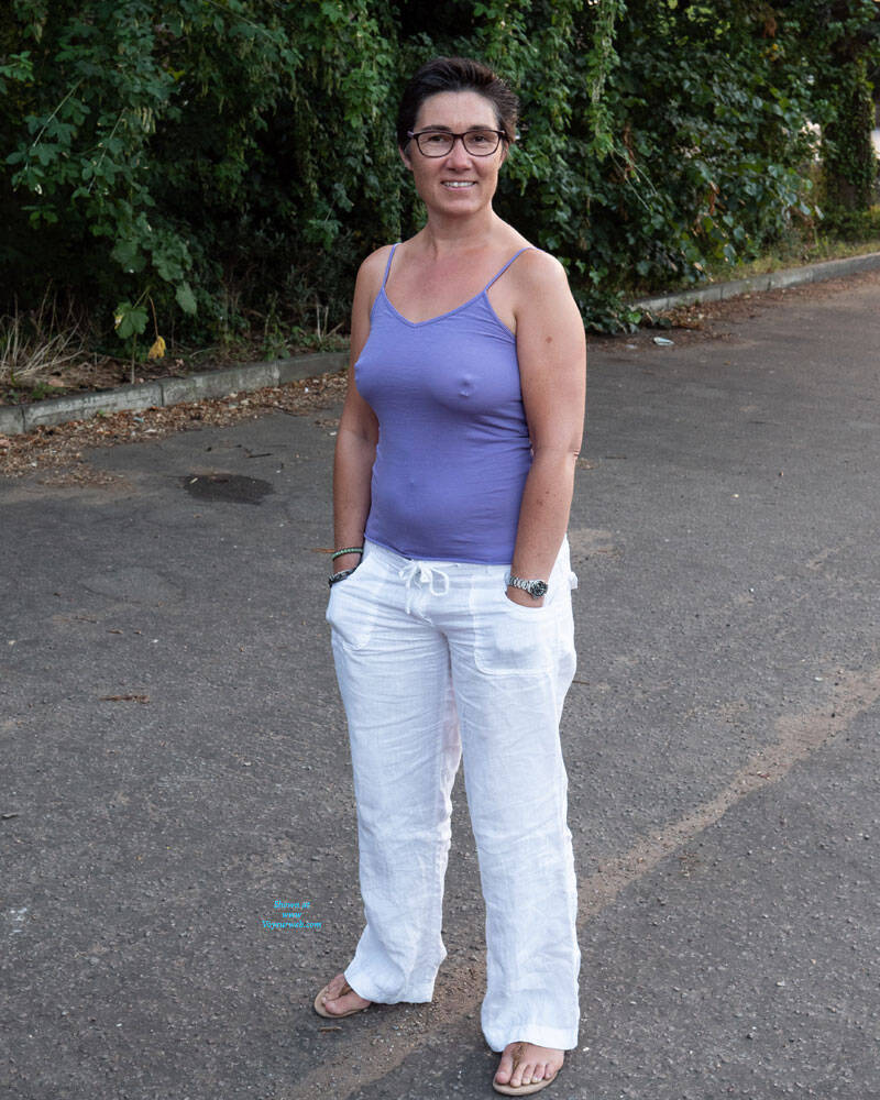 I had really lovely requests from some of you guys, you know who you are, asking to show more of my outdoors and nude in public photos. I have so many that I've had to create a big list and will pick 10 photos each time for the next few galleries for you. Some of the photos are full nudes, some topless and some of me in my normal braless and no underwear state. I also get asked a lot about my nipples, well, they never go down, they are always in some state of erection and go from their smallest at about 1/2 an inch to just about double that when rock hard and fully stiff. In metric thats 1.25cm to 2.5cm. I hope you like the photos as much as Mike and I did putting the list together. It brought back so many hot memories for us. xx Eve xx..You know I love to read all your messages..