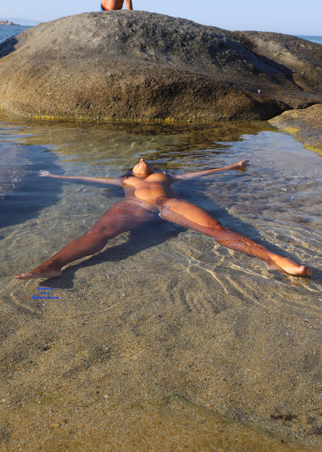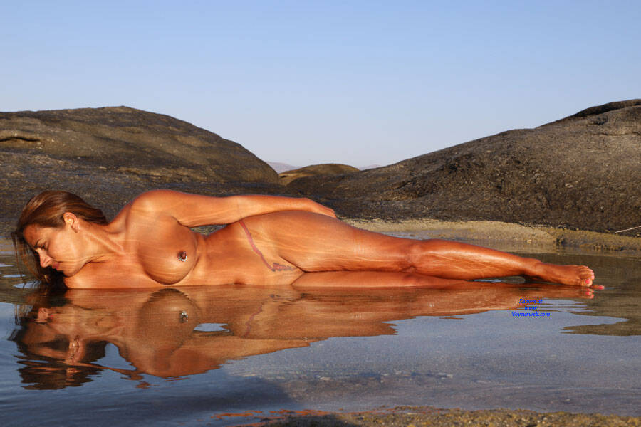 Hey to you all. Thank you again for all the support the previous month. Finishing in the top three made me extremely happy, and the decision to continue easier. This month we tried something different, though it didn’t work exactly as planed. During our vacation there was this small natural pool at the edge of the beach. We thought it was a good idea to have a shooting there but because it is a public area we had to do it very early in the morning to avoid people that don’t tolerate nudity. The first day we arrived at 8 o’ clock but unfortunately a fisherman was already there .We started reluctantly but after a while others started to emerge. Some of them came really close, watching, so we had to stop You can see one of them and the proximity, at pic number 10. We retuned the next morning but someone had spread the word and there were people waiting for us. Again we had to stop after some cell phones started to rise. We didn’t finish as we wanted, but here is the outcome of our effort. Hope you like it (M.)