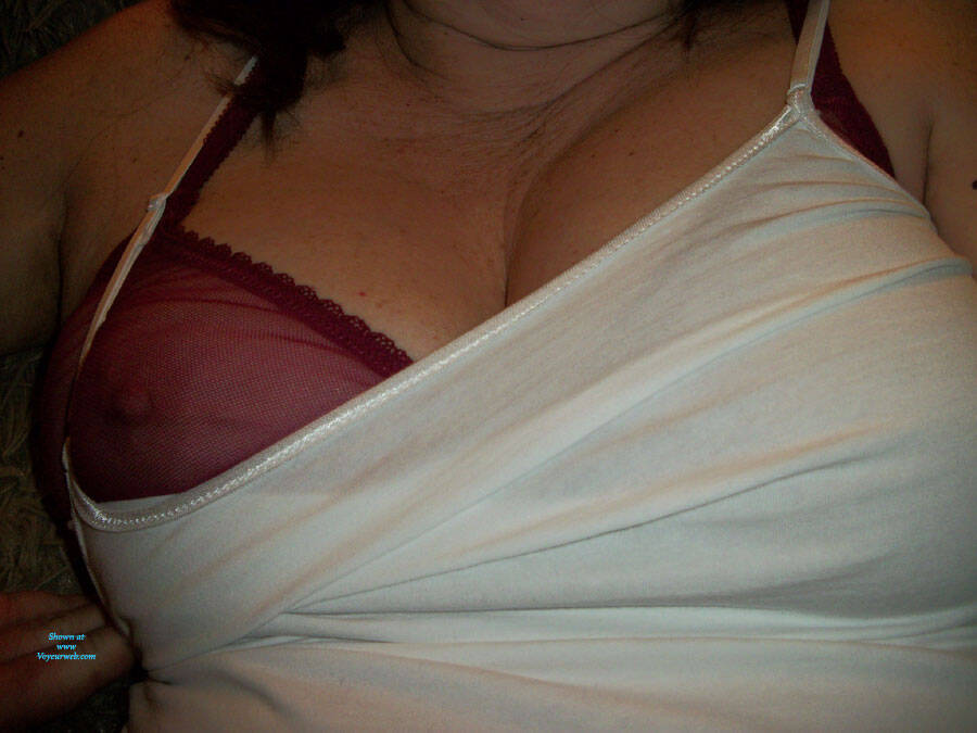 My wife wore this top while my buddy stopped for a visit before V day.  Her nipples poked through the whole time, we could not stop staring. Maybe soon he will do more than just look. After he left we took these shots before I released all over them. Let us know if they turn you on and if they help to get you off.