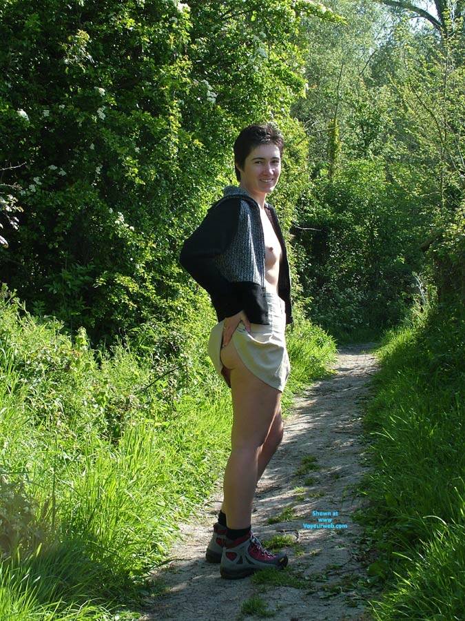 Mike and I love hiking and for this day we combined a great walk in the English countryside with some sexy photos. All I wore was a zip up top, a short skirt and my hiking boots, ideal for both activities..