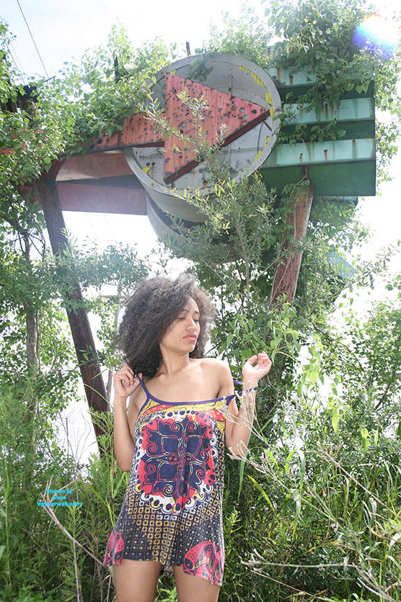 A cool sign, a cool model and a cool morning breeze prompted her to strip off her dress and pose nude.