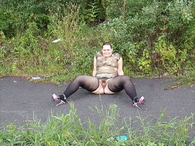 BBW Big Ass Big Tits Brunette Flashing Flashing Tits legs spread wide open Natural Tits Outdoors Public Exhibitionist Public Place Pussy See Through Trimmed Pussy High Heels Amateurs