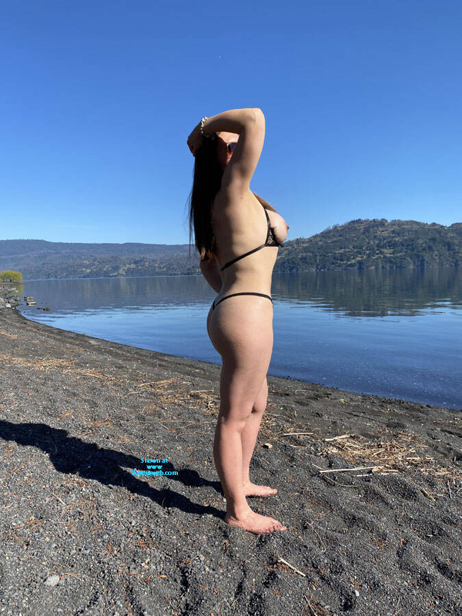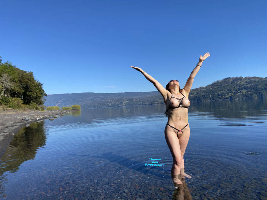 Kari enjoying the lake on a hot afternoon wearing her charms and provoking anyone who could arrive
