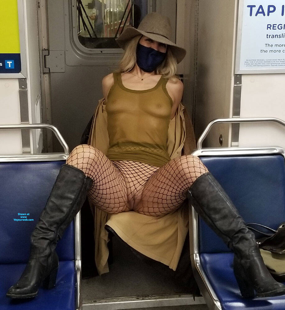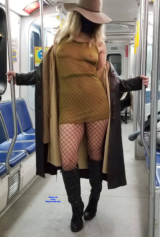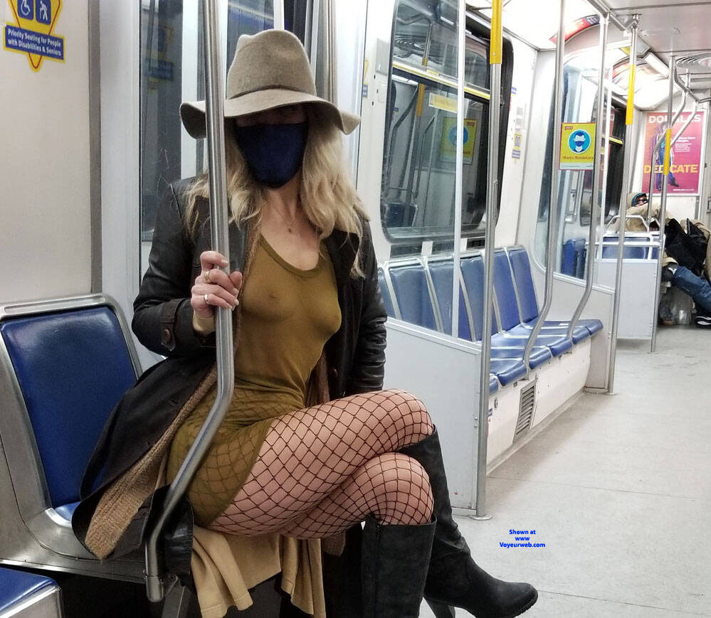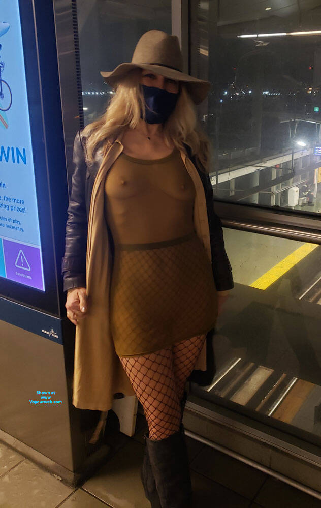 Firstly, just want to send out a big thank you to everyone for all the great comments on our last contribution and voting it into the top three :)When we saw the "flashing on public transportation" theme for this month's contest we couldn't resist sharing these pics from a fun night out we had during the lockdowns. It had been months since she'd had an opportunity to get dressed up for a night out on the town, so I suggested to Mswest one evening that we should get out and make our own little party and maybe spread some joy along the way. Next thing you know, she said let's go and changed into this super hot outfit to wear under her jacket. We grabbed a mickey of tequila, headed out and spent a couple of hours riding around town on our local train ...snapping pics along the way. Hope you all enjoy as much as we did, and let us know if you want to see more because there's some fun video from that evening that we can share as well :)