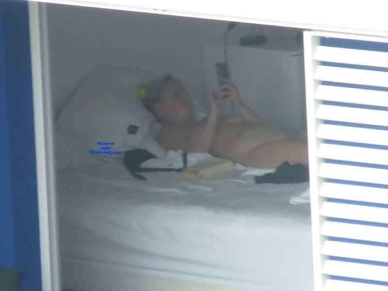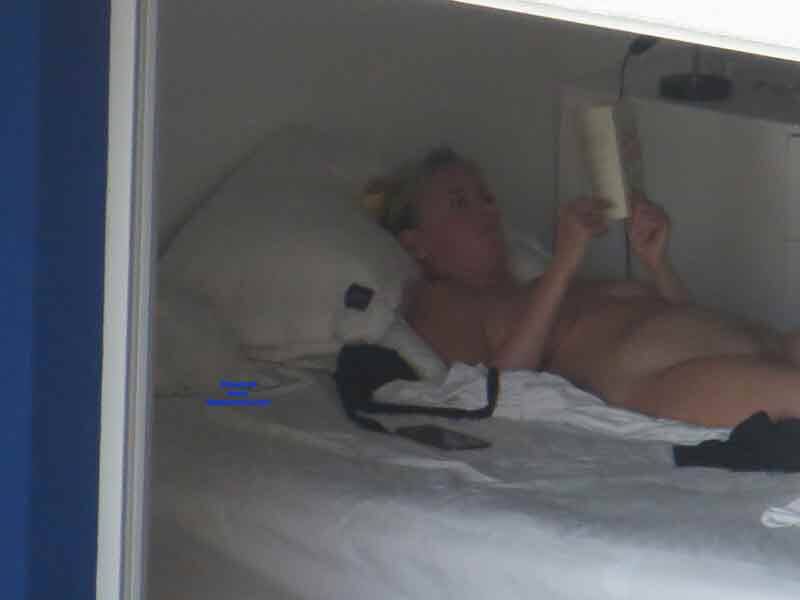 i saw this mature neighbor again she was lying on her bed reading a book topless i took my shitty camera and zoom on max she start streching her legs while reading and few minutes later i came back and she was completly naked this time reading the same book.