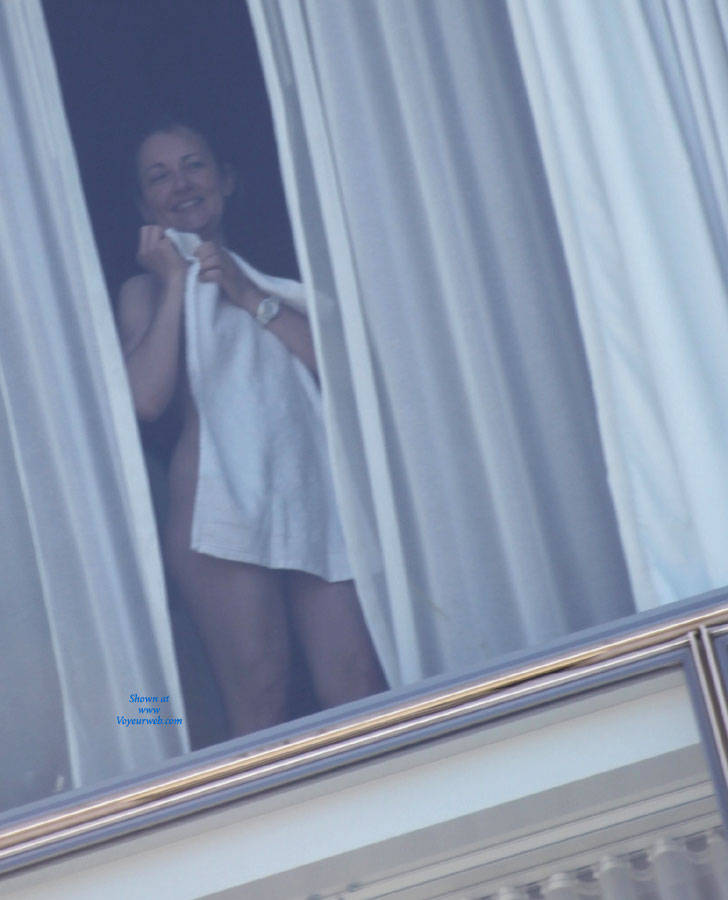I've come to appreciate catching a glimpse of a real exhibitionist with living in such a populated area and traveling so often. This particular day was different though. When I first spotted her she was nude staring out the window. I then saw her occasionally walk by as she began to dress. Once she was fully dressed she was looking out the window and noticed me with my camera, this is when the fun started.... She knew I could see straight into her room and she started to put on a show for me. She quickly removed her clothes and started to play peek-a-boo game of letting me look at her delicious body. At one point she is rubbing lotion on her perky tits directly staring at me with the most inviting eyes. I am a pretty attractive gentleman, I am quite sure I might of been invited into her room if I was daring enough to go into the hotel and knock on her door...