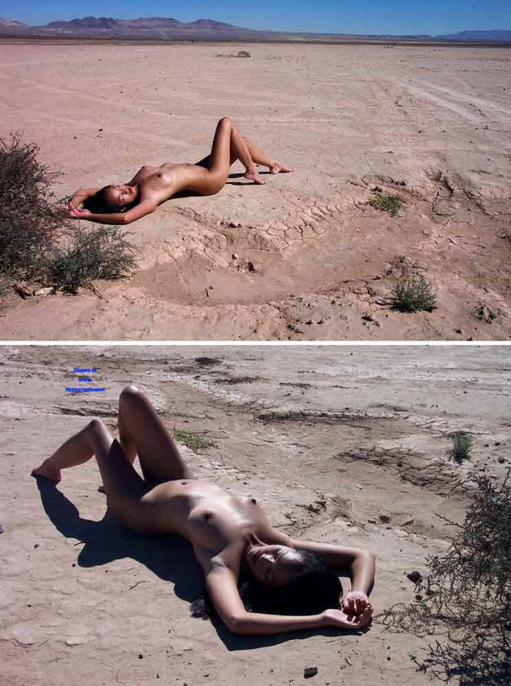 She slipped out of her night dress on one of the dry lake beds around Vegas!