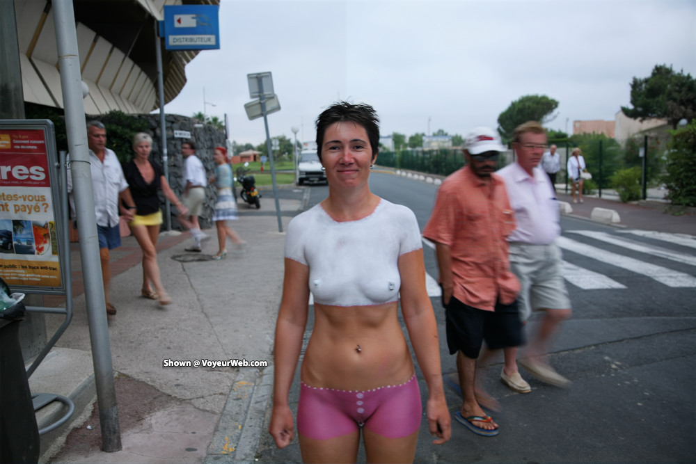 A cool evening and everyone else at the resort was dressed so Mike body painted a little white top and pink shorts on me and off we went for some fun