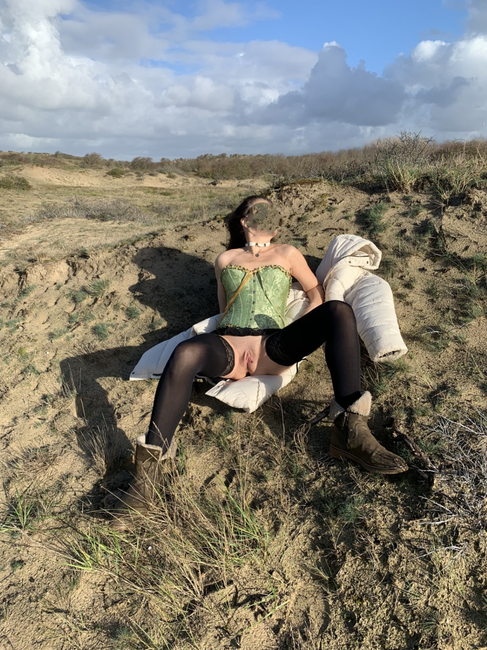 Esther in the dunesStarting bottomless and taking of the corset, she is 50 already .Love reading your comments..................................,,.!!