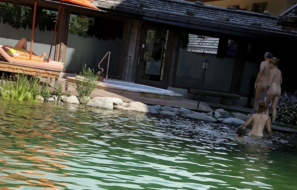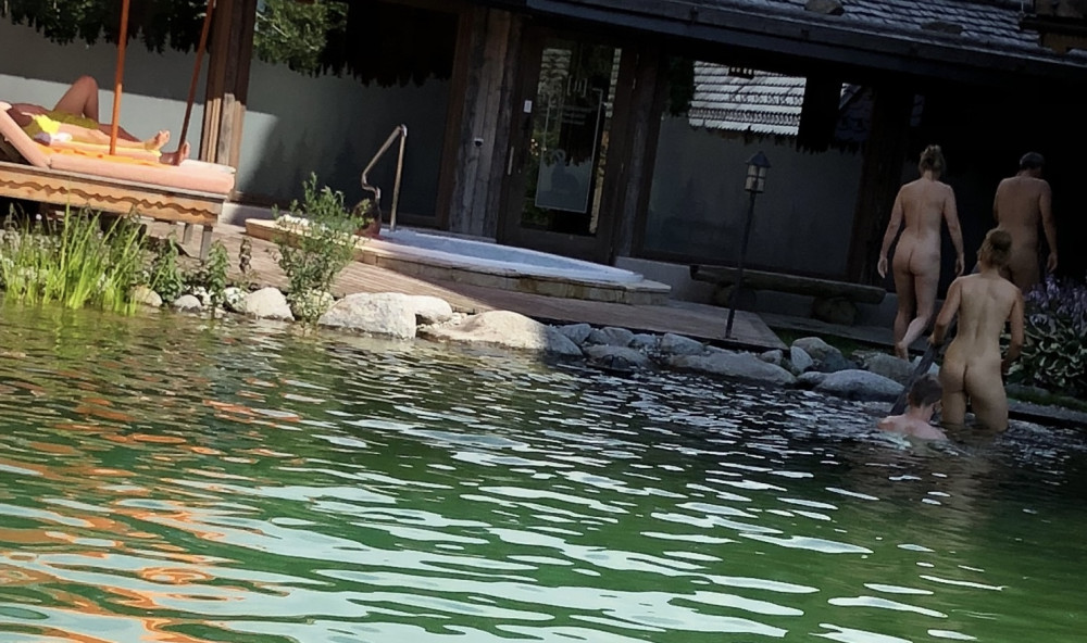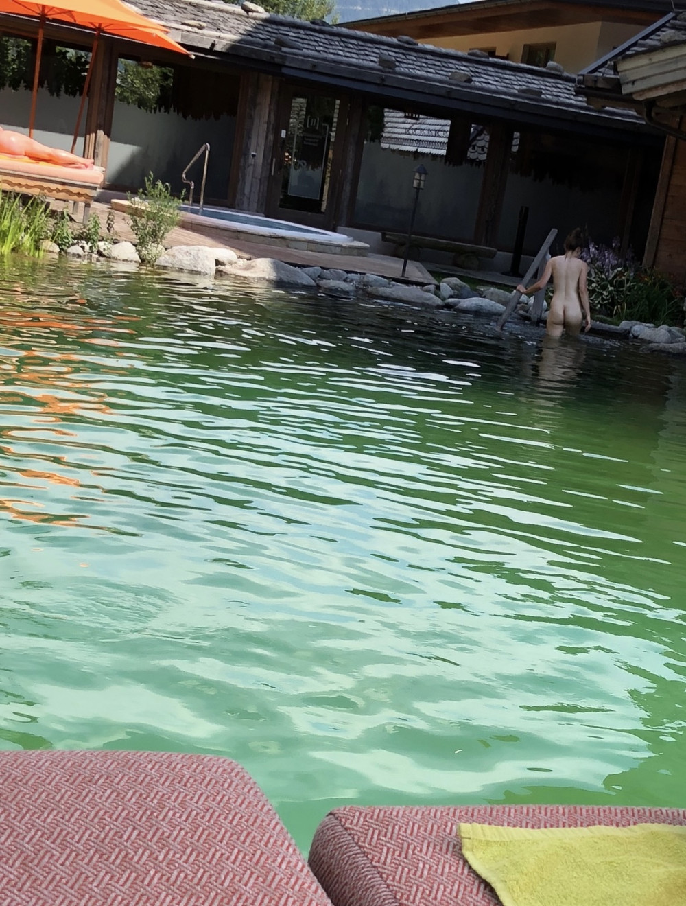 I want to share these pictures with you, although I know they are not or good quality.Therefore this are real voyeur pictures from a wellness hotel in Austria some years ago. There was a sauna and a little lake where people used to relax naked. Usually after finishing the sauna, people came out and some went into the lake to cool down.
