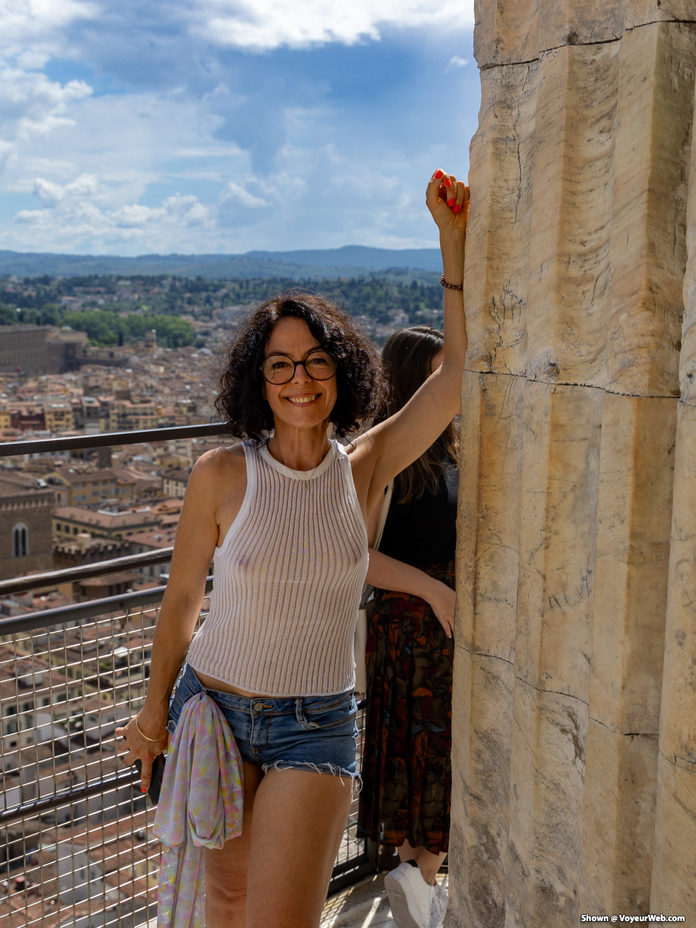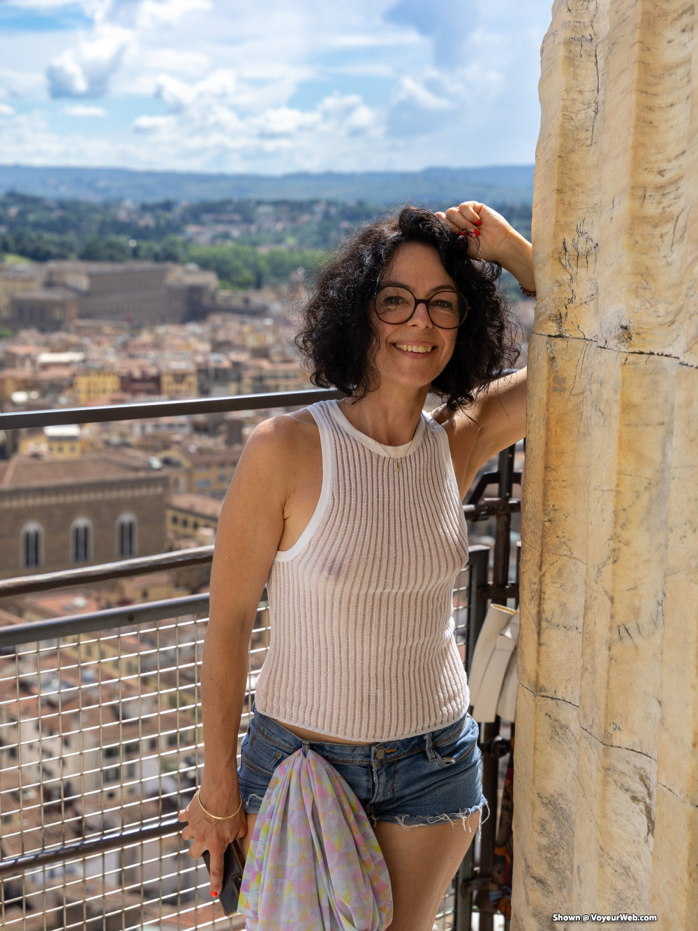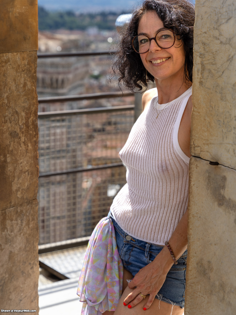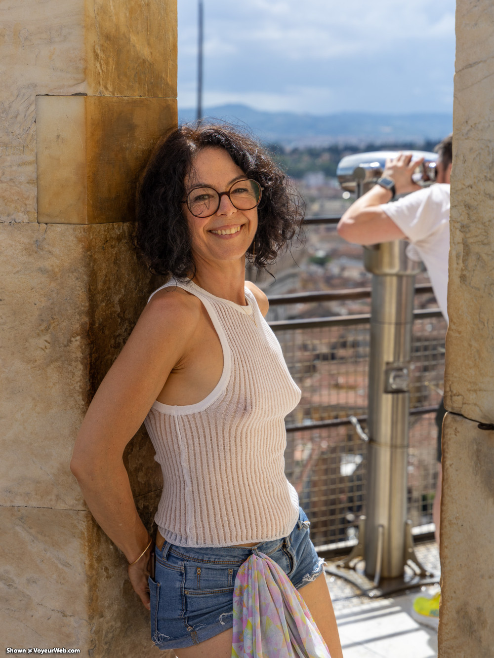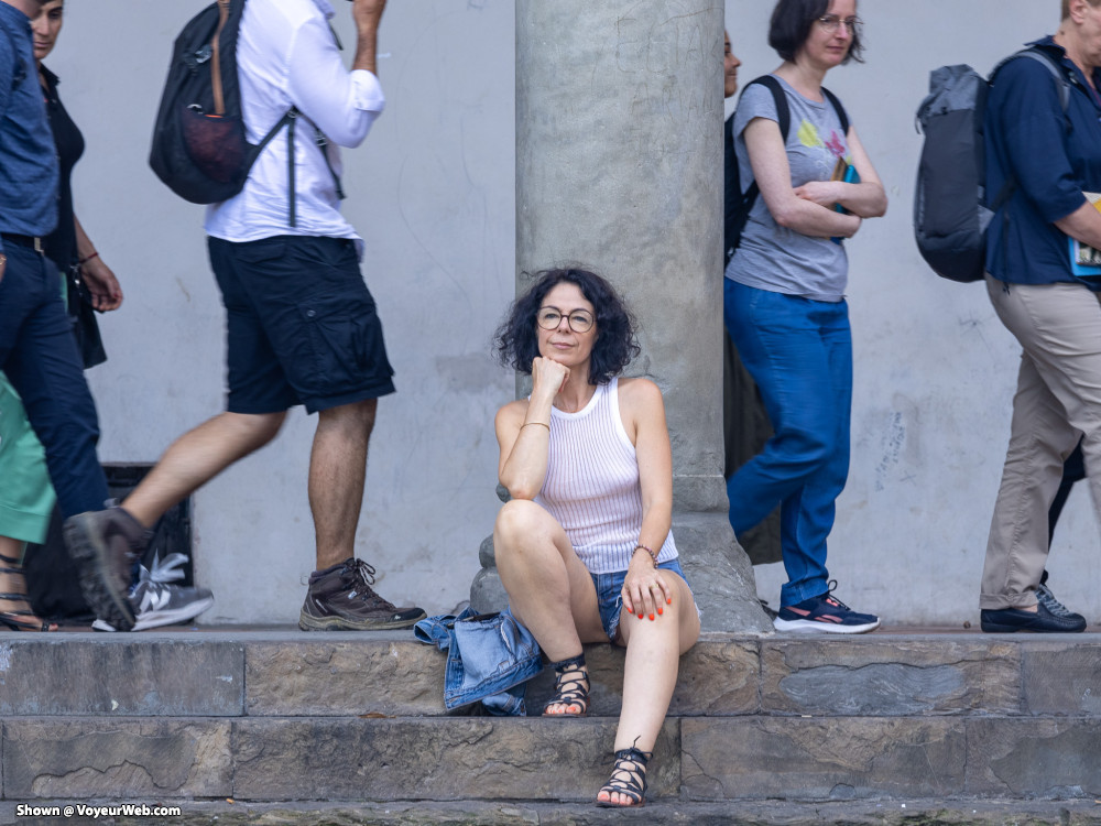 Sheer top, short short without panty, the best way for tourism