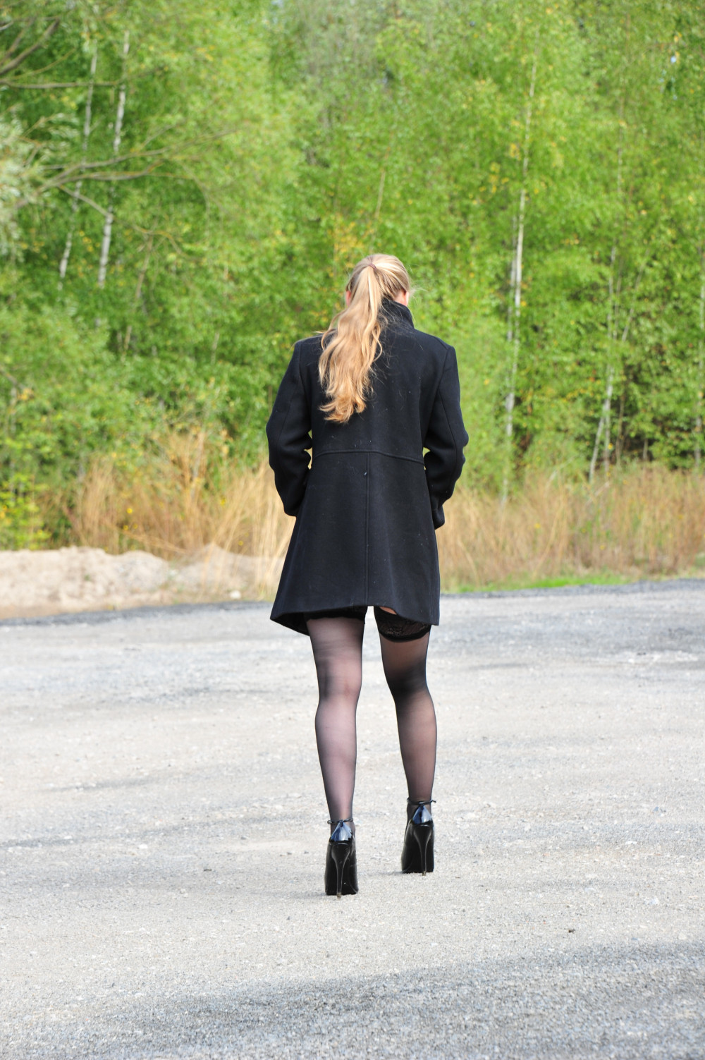 Sexy in nylons and overcoat ... anything on underneath!?!?!?! Nuthin' 'just me' about those booty cheeks ... luv to see much more of your god given beauty front and back on the road and elsewhere ... keep having fun!!!!!