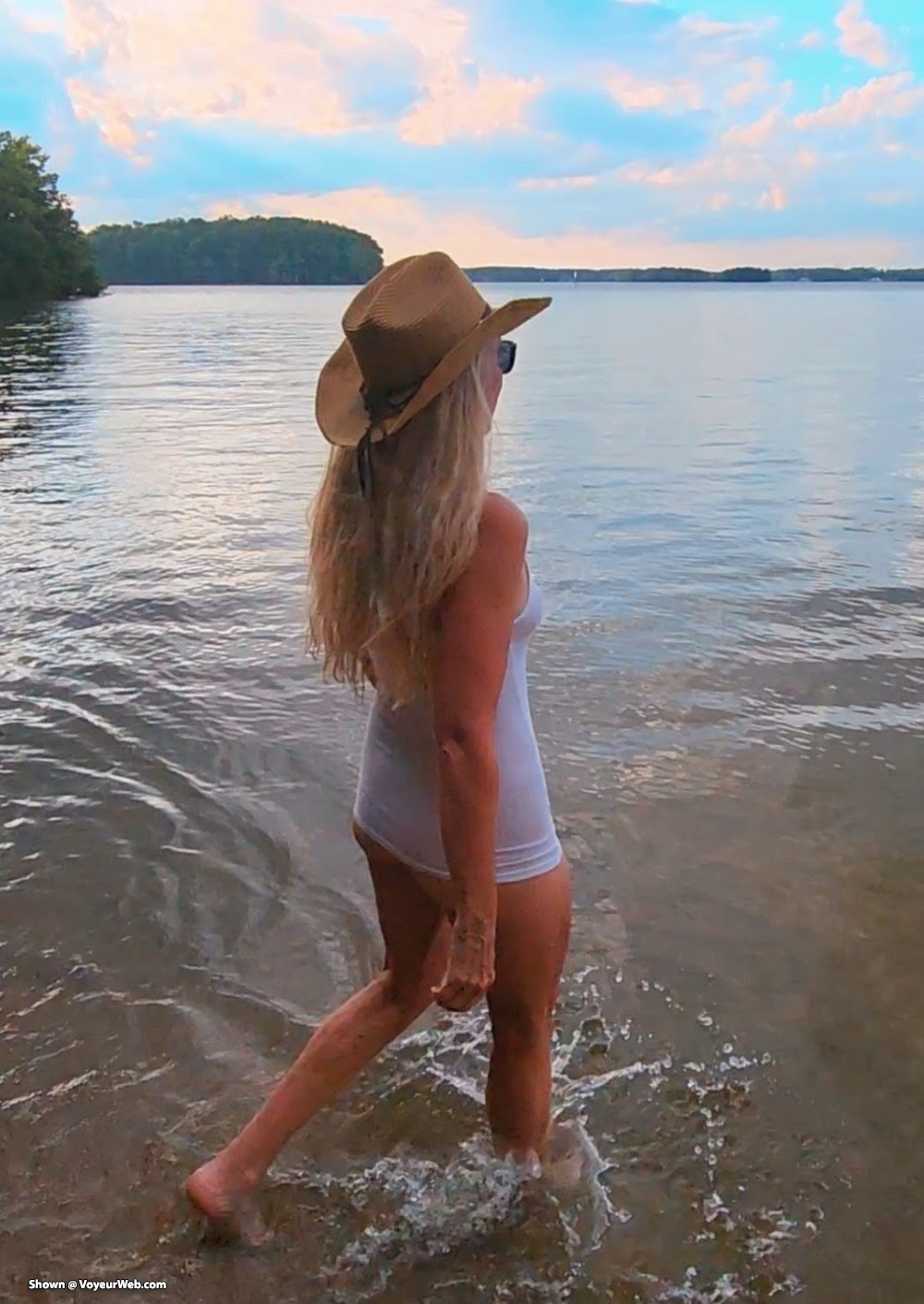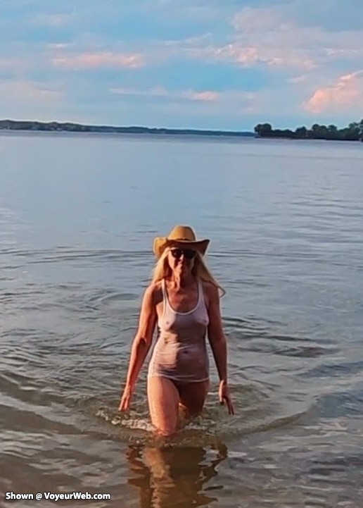 Dared her to wear just her white shirt at lake