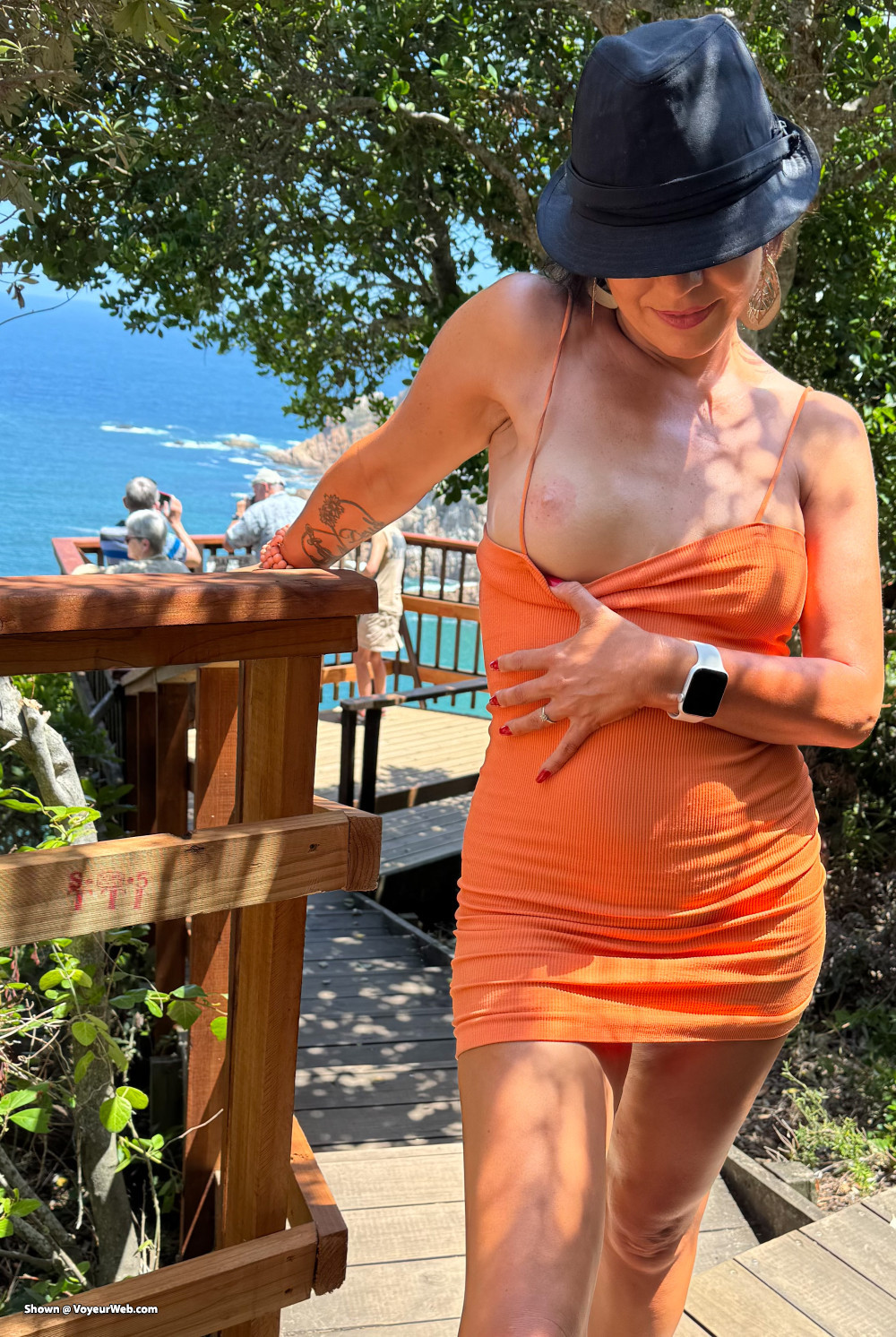It is exciting to know that people can get a glimpse of my boobs and pussy in a public place..