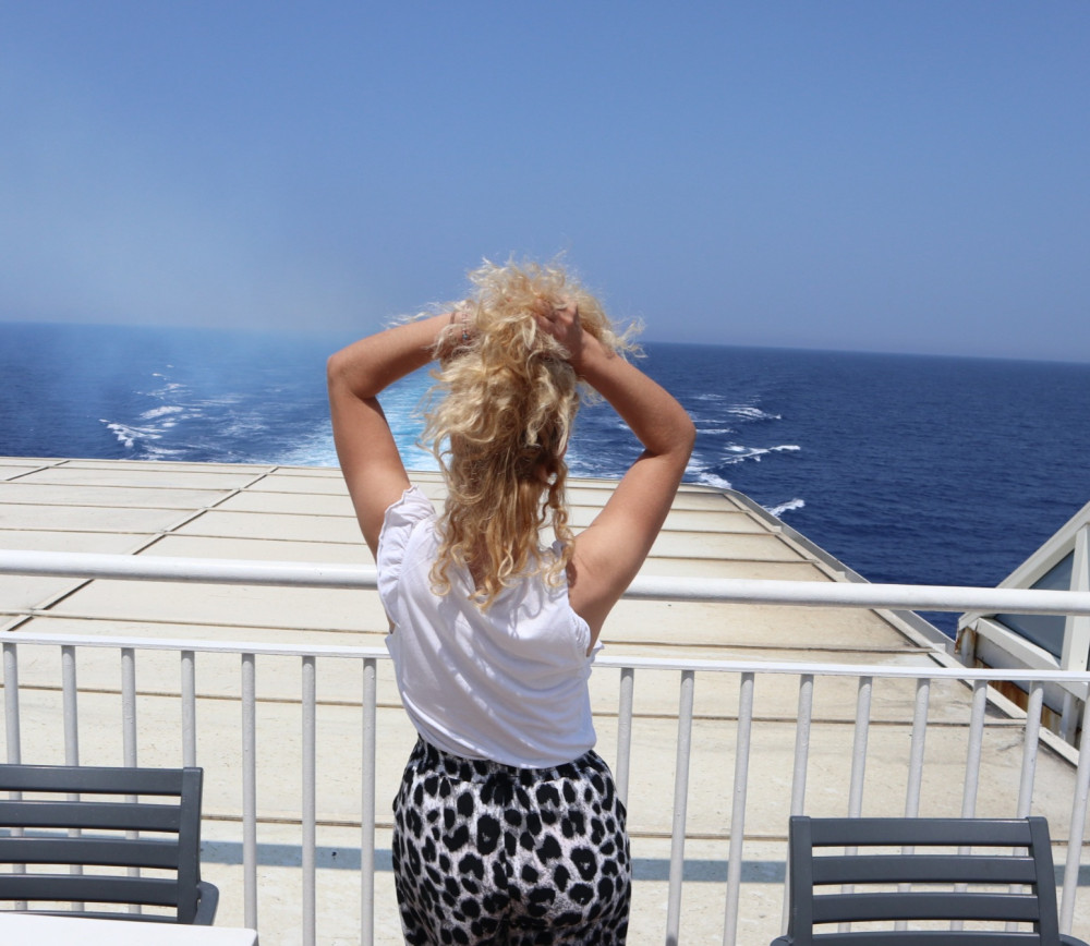 I enjoy to be exposed in public and thinking that maybe someone is looking my sexy boobs.  The ship was the right place to get rid of my T shirt and showing my hot nipples. I want you to suck them  and make them  red and hard!!