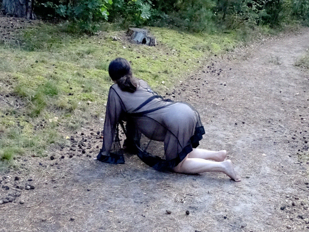 Plump Anna shamelessly shows off her charms on a dirt road, sticking out her buttocks and showing off her dirty feet