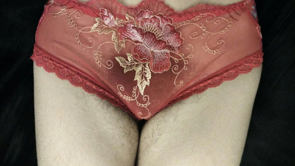OMG, what a sweet bush, specially in red transparent lace pantie