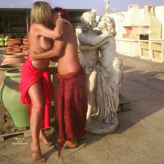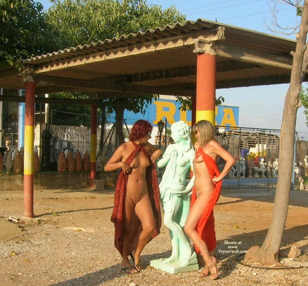 There are often found on Spanish roads small shops where one can find things for your garden at home. Marta and I have always found them very cute, so one day we thought about stopping by to have some fun posing next to one of those shops. It would have been just great if you could have come up to make a video clip about us...At least we hope you like these pictures and vote for us. Lots of kisses from Marta and Rosa de MadridEn Espana junto a la carretera, muchas veces te encuentras tiendas de cosas que puedes poner en el jardin de tu chalet. A Marta y a mi nos resultan muy graciosas, así que un dia decidimos parar el coche y divertirnos posando junto a ellas. Nos hubiera gustado mucho que tu tambien vinieras a hacer un clic sobre nosotras pero si no es así al menos esperamos que te gusten estas fotos y nos votes. Muchos besitos de Marta y de Rosa de Madrid