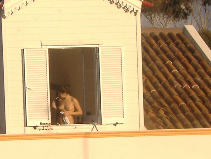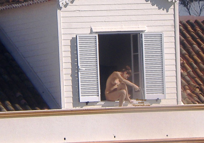 Hello voyeurweb!!This is my first contri ever. This is an amazing brazilian babe that loves to keep the sun every afternoons. In this photos she was totally nude doing depilation and i don’t resist to take some photos. I take my binoculars and I post a little camera in the focus. If the votes are good I will send more! sorry my english.