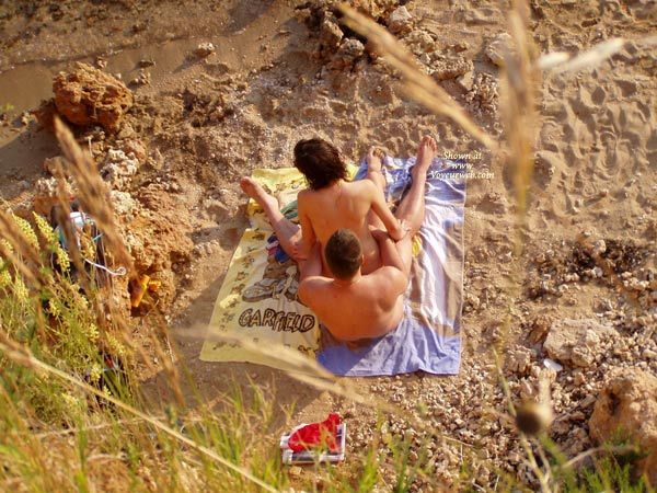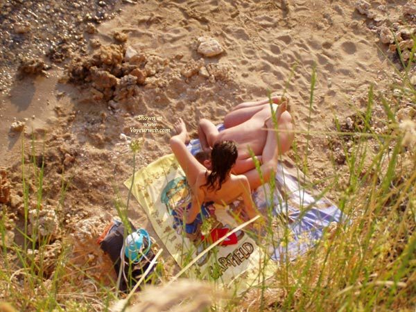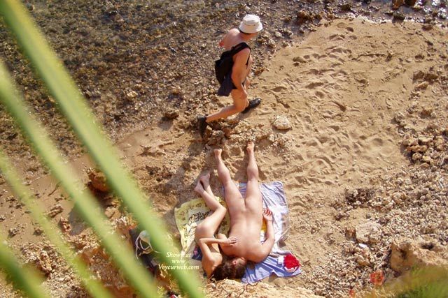 I voyeuredthis couple for 3 yrs. They come to the same beach, same spot evry year. There is just one problem......I am on the same spot also:).....enjoy.