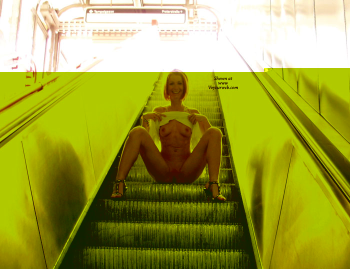Damon: How fun! Going up, up, up... not just the moving stairs, and not just your dress hem...